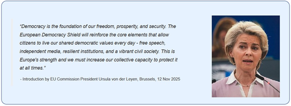 The two main headline items are the European Democracy Shield and the EU Strategy for Civil Society.